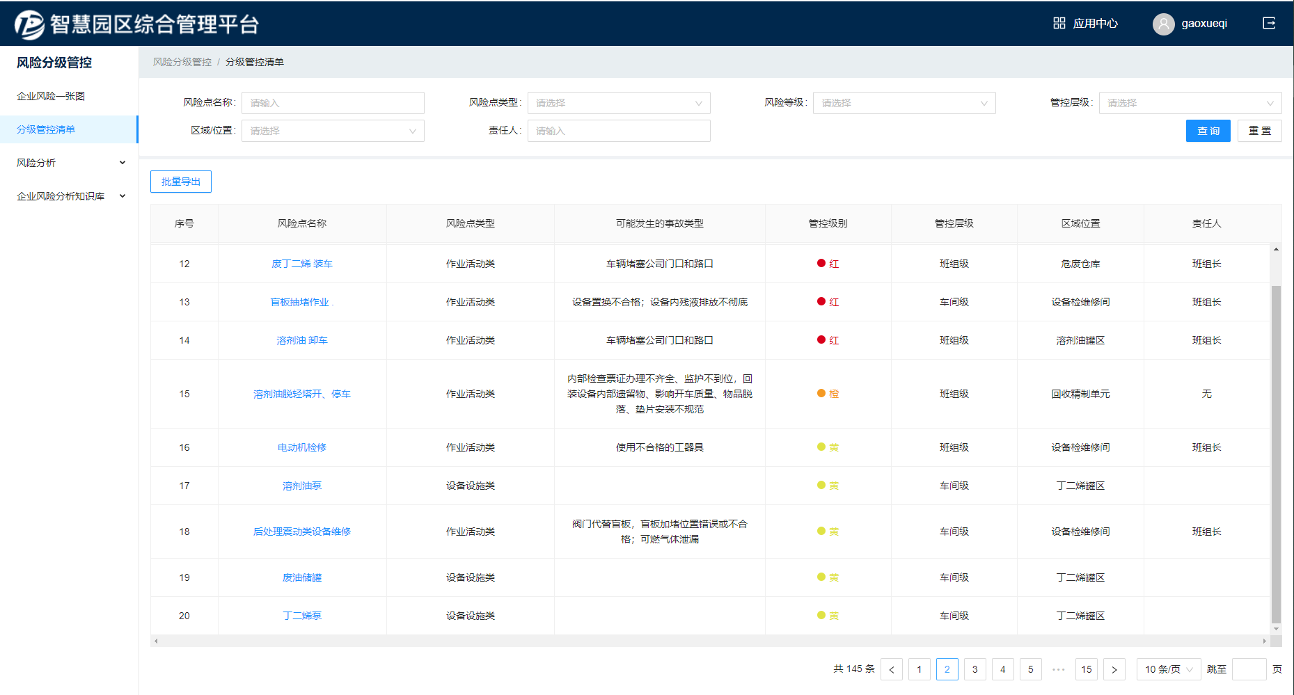 通過風(fēng)險(xiǎn)分級(jí)動(dòng)態(tài)管理系統(tǒng)的建設(shè),整合整個(gè)園區(qū)及企業(yè)特殊作業(yè)、智能視頻應(yīng)用、第三方隱患排查、監(jiān)管部門執(zhí)法檢查等信息,實(shí)現(xiàn)所有信息的互通關(guān)聯(lián),達(dá)到對(duì)動(dòng)態(tài)風(fēng)險(xiǎn)管理的目的。