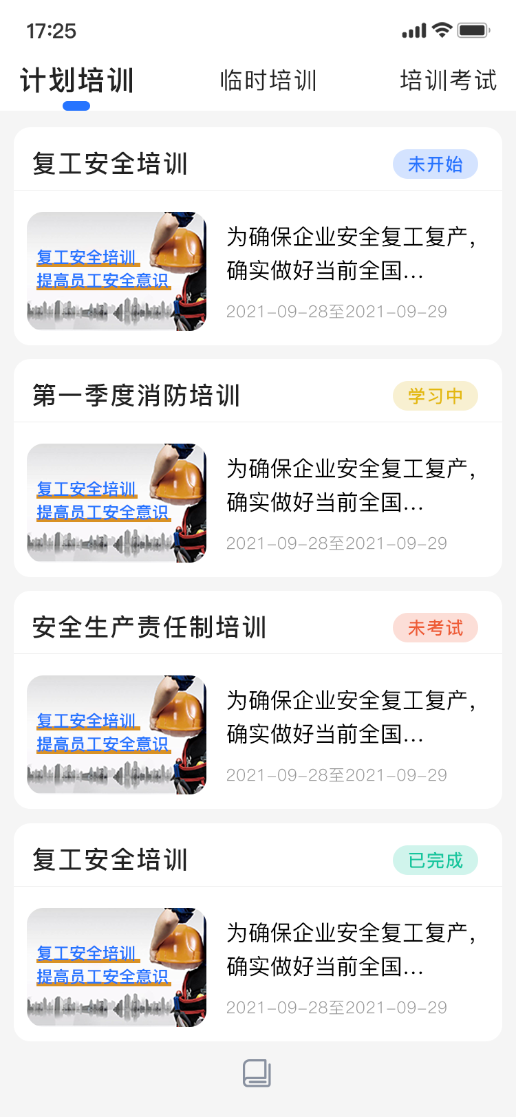 培訓教育系統,為企業提供了前沿新聞資訊的了解、專項資料的學習、企業內的培訓教育及考試。 通過多種學習手段,不僅更好的提高了企業對員工的繼續教育。也幫助員工了解到了更多的專業知識,從而更好的保障了企業的安全生產。 目前產品可靈活配置、通用性較高,也實現了類型和資料的多元化。從而可滿足各規模的園區及企業的使用需求。