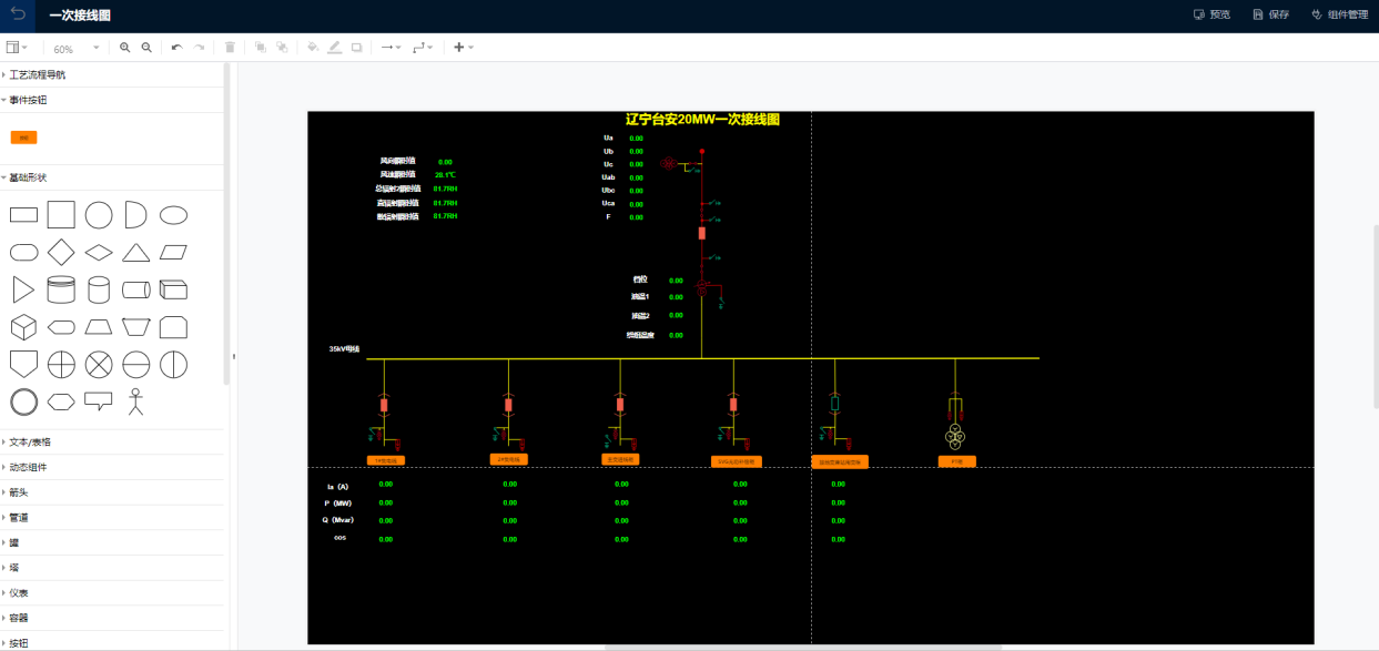 工藝組態可視化設計平臺模擬工藝設計配置,輔助點位-監測數據進行顯示,功能包括工藝組態設計器,工藝組態預覽、工藝組態管理。工藝組態設計器提供豐富的可視化組件,通過拖拽方式將工藝流程中的各設備、管道通過畫布形式呈現出來;將各設備、點位的數據等實時呈現出來;當裝置或設備出現值得關注的狀態變化時要在工藝流程中對應的設備有比較直觀的表現,進而進行工業設備運行分析,為開展智能化工業管控的提供了根本前提。