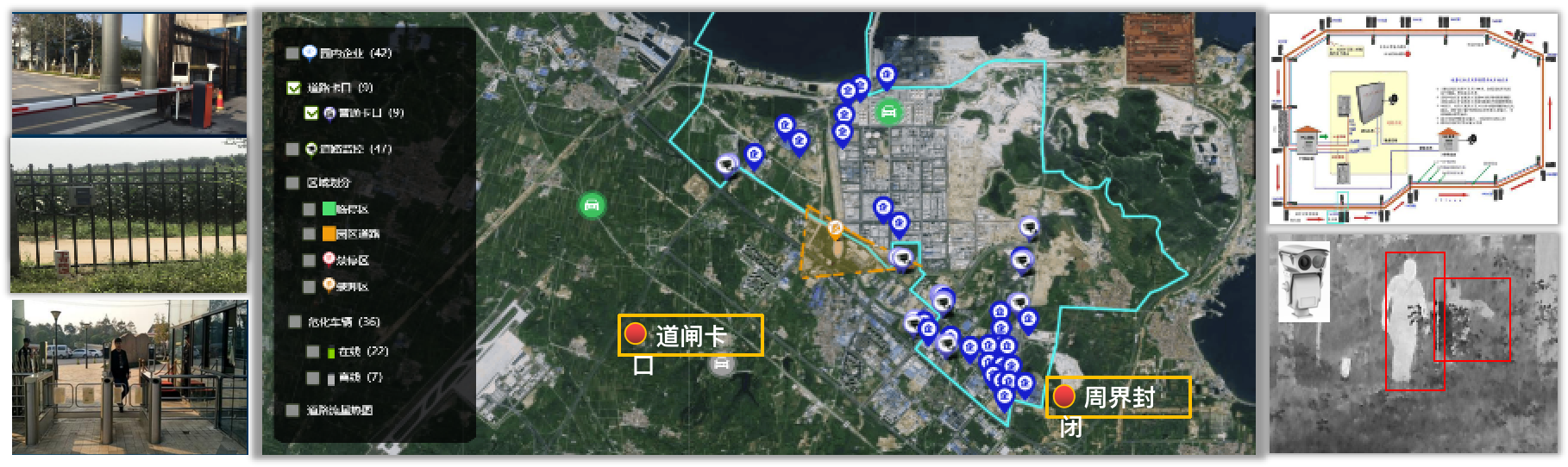 園區封閉管理系統結合人員、車輛定位數據、電子圍欄、園企卡口道閘、視頻監控等,實現在園區管理范圍內對出入園區的人員、車輛等流動性因素進行控制管理,為園區內企業提供安全服務,實現對入園車輛從預約入園、卡口管控、園內車輛監管、企業安檢,全流程、實時、動態的園企協同監管模式。 封閉化管理系統對出入園區的各類車輛、人員和重要區域的統計分析和管理功能。 包括周界封閉及防入侵系統、封閉管理門禁/卡口系統、封閉化園區綜合監控系統(危險物品車輛運輸監管系統、視頻監控系統、應急廣播系統、無線對講通訊系統、園區智慧巡檢系 統、出入園區管理系統等)、園區“一張圖”地理信息系統(GIS)等等。
