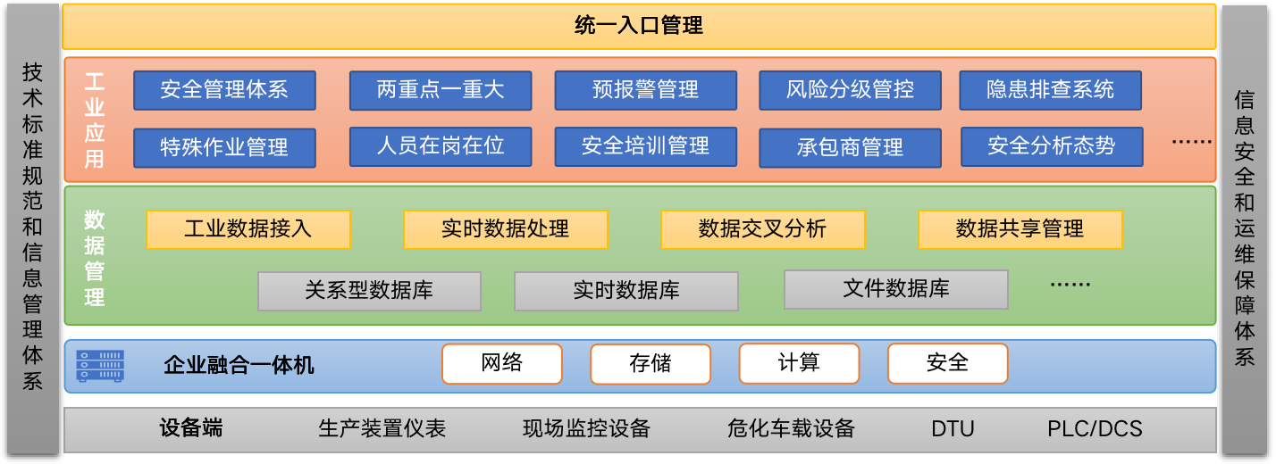 遵循《江蘇省化工企業安全生產信息化管理平臺建設基本要求(試行)》方案要求,以實現化工企業安全生產全要素數字化管理為目標,圍繞風險分級管控和隱患排查治理 體系、化工過程安全管理、安全生產標準化等內容,建設企業安全生產信息化管理平臺。
